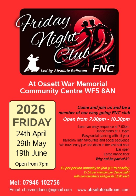 Doors open at 6.30pm with the dance starting promptly at 7.30pm
